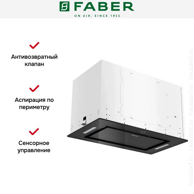 Итальянская компания Faber завоевала мировую известность благодаря своим оригинальным и надежным вытяжкам. История бренда началась в 1955 году: инженер А. Галасси с партнерами основал компанию по производству изделий из пластика — самого модного в то время материала. Оригинальную вытяжку фирма представила в 1958 году — она получила название по наименованию пластмассы Plexiglas.