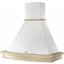 Еще один универсальный цвет — белый, он особенно хорошо подходит для небольших кухонь, так как зрительно способен расширить пространство. На белом фона меньше заметны капли воды и даже частицы жира. В классическом или античном белом выполняются купольные и каминные вытяжки, угловые и встраиваемые модели. Светлые кремовые тона, оттенок слоновой кости — наиболее распространенный вариант для больших вытяжек с окантовкой из натурального дерева.