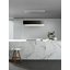 Воздух всасывается по периметру вытяжки через узкие щели. Он собирается в потоки, которые направляются прямо к фильтрам внутри, не рассеивается на кухне. Благодаря этой технологией вытяжку можно сделать компактнее и энергоэффективнее.