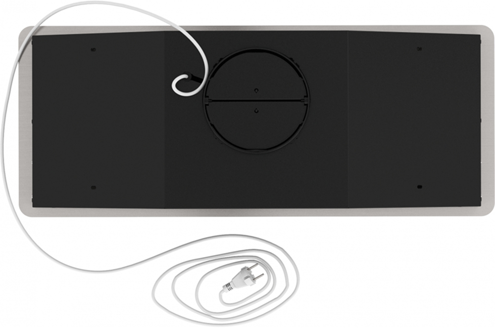 Воздух всасывается по периметру вытяжки через узкие щели. Он собирается в потоки, которые направляются прямо к фильтрам внутри, не рассеивается на кухне. Благодаря этой технологией вытяжку можно сделать компактнее и энергоэффективнее.