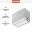 Выглядит как встроенная вытяжка с лаконичной белой матовой отделкой и линейной решёткой дизайна Maris. Компактные габариты — высота 52 см, ширина 29 см, глубина 32,5 см — позволяют спрятать прибор внутри кухонного шкафа, сохраняя аккуратную рабочую зону. В комплекте идёт направленная решётка и фланец переходной 150/120 для согласования с воздуховодом диаметром 150 мм.