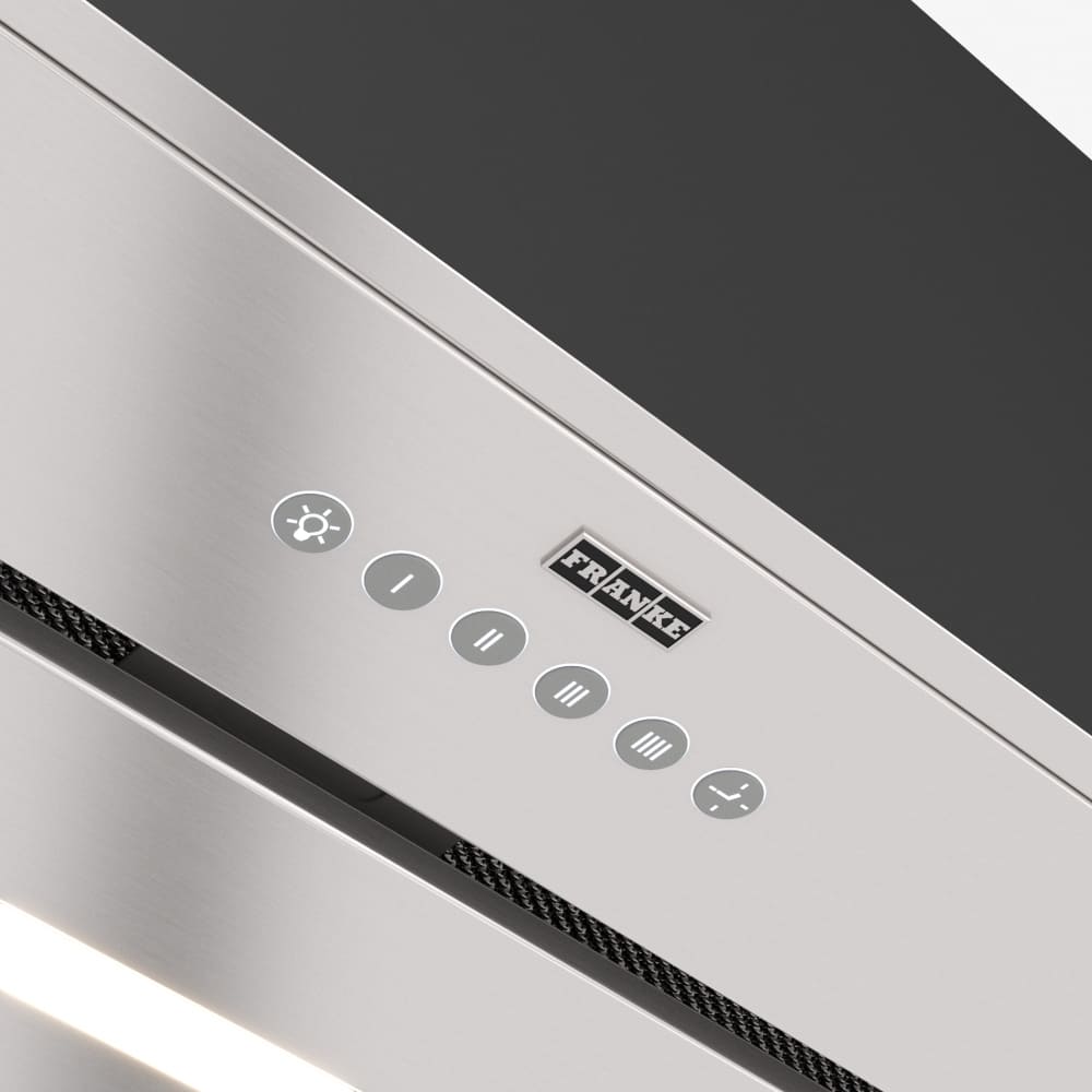 Встраиваемые и простые настенные модели, как правило, оснащаются боковой панелью управления, состоящей из нескольких кнопок. Их количество зависит от числа скоростей, наличия интенсивного режима и встроенного освещения. Боковое расположение панели управления делает вытяжку еще более незаметной.