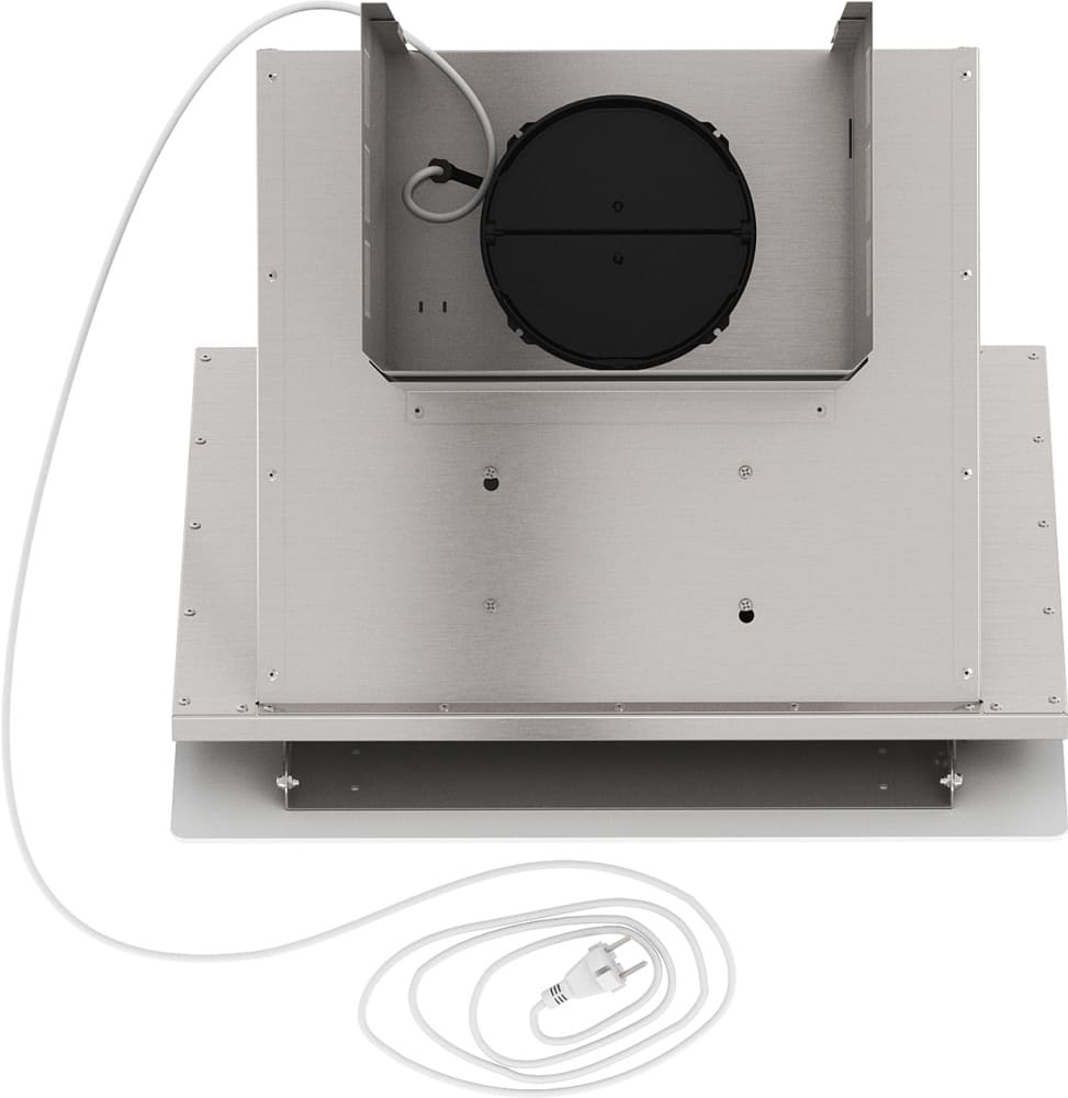 Очистка воздуха организована через металлический жироулавливающий фильтр (один в комплекте) с защитной пластиной из перфорированной стали сверху. При желании можно установить угольный фильтр для работы в циркуляционном режиме (продаётся отдельно). Рабочая зона освещается двумя светодиодными лампами по 1,5 Вт каждая, что создаёт чёткое, экономичное освещение плиты. Управление электронное, сенсорные клавиши расположены спереди для удобного доступа.