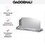 Вытяжка работает в режиме отвода и рециркуляции воздуха, установлен алюминиевый жироулавливающий фильтр, угольный приобретается отдельно. Выбирайте из 4 уровней мощности подходящий, устанавливайте режим на кнопочной панели. По бокам расположены лампы, освещающие рабочее место.