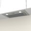 Вытяжка, встраиваемая в потолок, часто устанавливается над кухонным островом в просторной кухне и отличается достаточно высокой мощностью: она может работать как в режиме рециркуляции, так и в режиме отвода, так как воздуховод также скрыт в потолке. Вытяжки могут монтироваться в подвесной потолок либо устанавливаться в специальные многоярусные конструкции из гипсокартона непосредственно во время ремонта кухни. Для управления ими используется пульт ДУ.