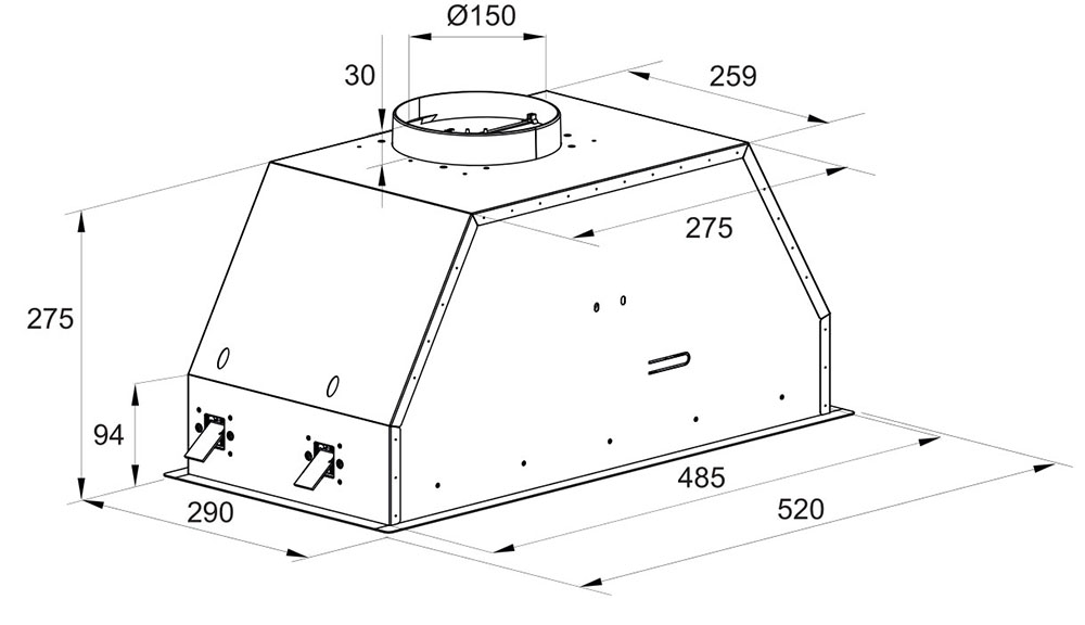 Встраиваемые и простые настенные модели, как правило, оснащаются боковой панелью управления, состоящей из нескольких кнопок. Их количество зависит от числа скоростей, наличия интенсивного режима и встроенного освещения. Боковое расположение панели управления делает вытяжку еще более незаметной.