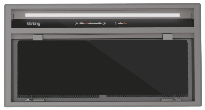 Встраиваемая вытяжка — выбор тех, кто хочет максимально задекорировать технику, или владельцев маленькой кухни. Тип встраивания: в шкаф. Обратите внимание на цветовые сочетания модели Korting KHI 60945 DGN, чтобы органично вписать ее в свою квартиру. Оттенок корпуса: черное стекло. Благодаря лампочкам, которые расположены на нем, можно освещать плиту и столешницу рядом, чтобы готовить было еще проще и приятнее.