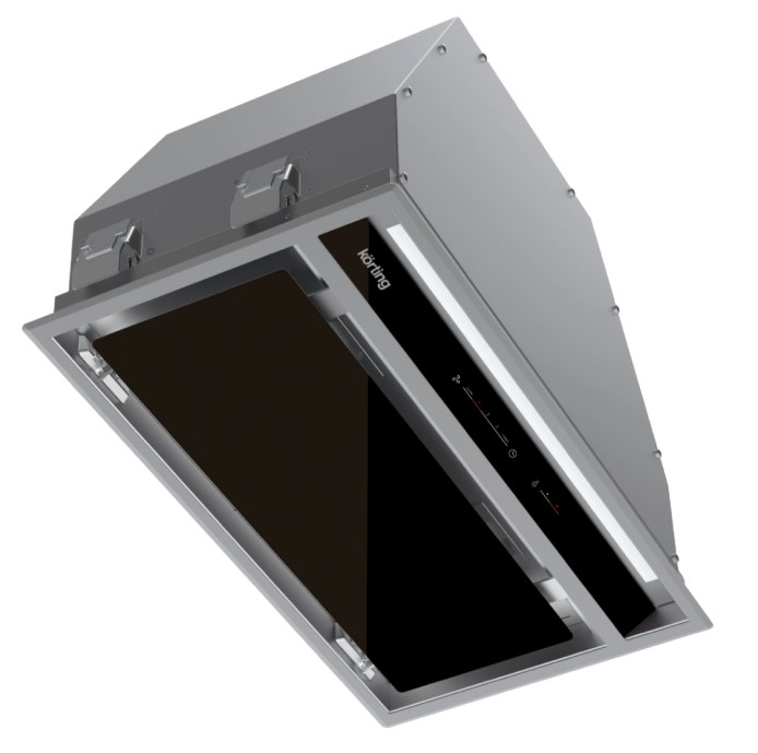 Вытяжка, встраиваемая в потолок, часто устанавливается над кухонным островом в просторной кухне и отличается достаточно высокой мощностью: она может работать как в режиме рециркуляции, так и в режиме отвода, так как воздуховод также скрыт в потолке. Вытяжки могут монтироваться в подвесной потолок либо устанавливаться в специальные многоярусные конструкции из гипсокартона непосредственно во время ремонта кухни. Для управления ими используется пульт ДУ.