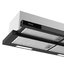 Можно выделить два основных вида вытяжек с выдвижной панелью. В вытяжках, встраиваемых в подвесной шкаф, выдвижная панель необходима, так как размеры таких устройств определяются размерами самого шкафа. В закрытом состоянии глубина вытяжки может быть меньше глубины варочной поверхности. Телескопическая выдвижная панель, которая устанавливается преимущественно в устройствах, работающих в режиме отвода, гарантирует полный захват воздуха, загрязненного каплями жира, частицами сажи, испарениями. Панель можно выдвинуть как нажатием на кнопку, так и потянув за ее переднюю часть. В некоторых моделях при подобном выдвижении одновременно включается подсветка. Когда же панель убрана, вытяжка становится практически незаметной — такой вариант лучше всего подходит для небольшой кухни.