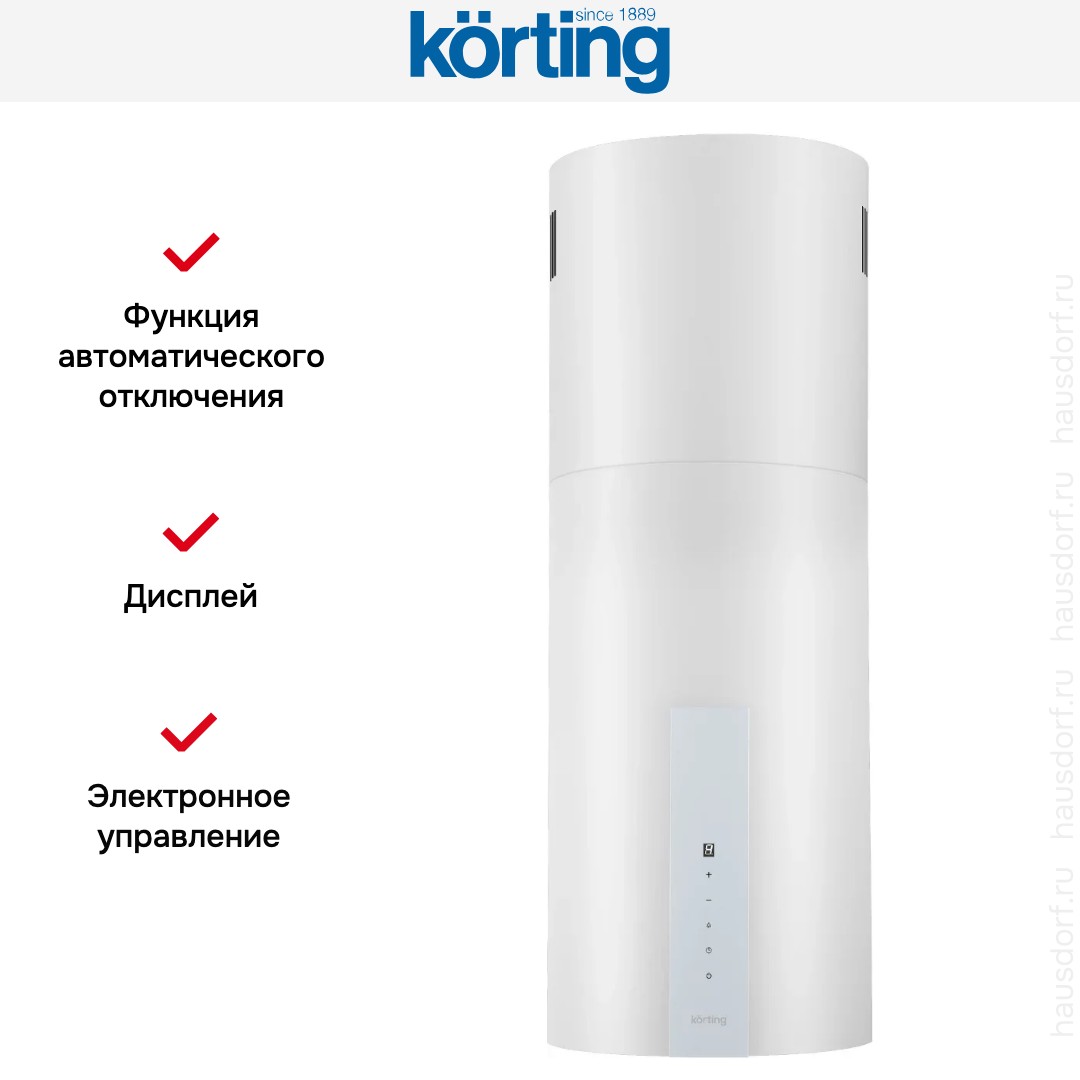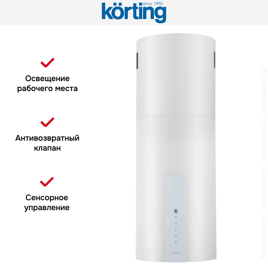 Островная вытяжка Korting KHA 35808 DN Cylinder — стильное и практичное решение для современной кухни с островной плитой. Ее цилиндрический корпус выполнен из прочного металла и покрыт элегантным белым лаком. Компактная ширина 35,15 см делает прибор универсальным для кухонь разного размера, а высота от 99 до 117 см обеспечивает удобную установку над плитой. За счет продуманной формы она не загромождает пространство и хорошо смотрится в светлых и минималистичных интерьерах. Металлическая поверхность легко очищается, а ровный белый тон гармонирует с большинством кухонных гарнитуров.