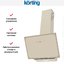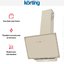 Наклонная вытяжка Korting имеет фронтальную панель из бежевого стекла и декоративный короб, окрашенный в тот же цвет. По периметру панели нанесен узор, поддерживающий классический дизайн модели — она отлично подходит интерьеру в светлых оттенках, с большим количеством теплого дерева. Панель управления при этом максимально современная: сенсорные переключатели и цифровой дисплей для индикации уровня мощности.