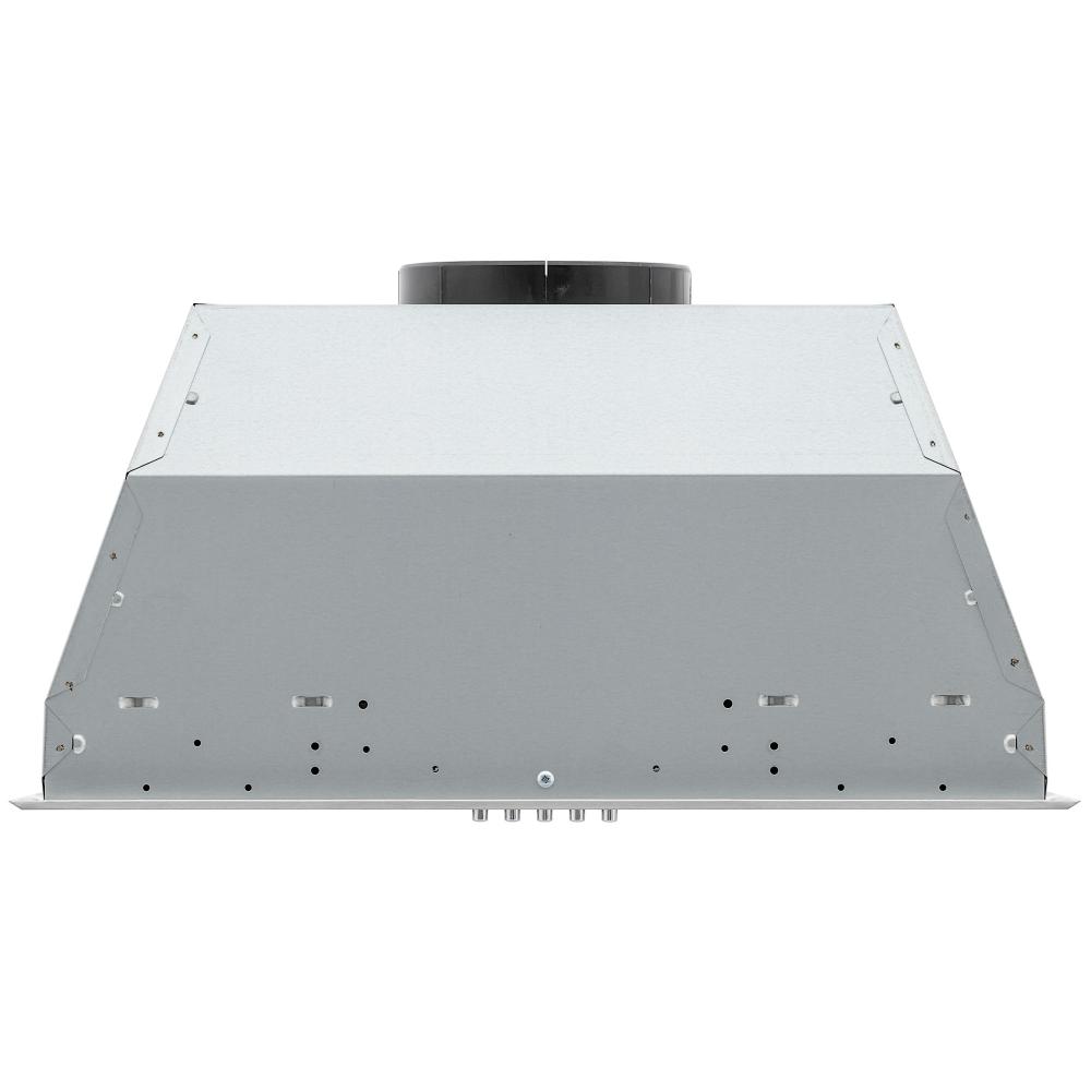 Вытяжка устанавливается в шкаф или в потолочную нишу — таким образом все соединительные элементы и корпус оказываются скрыты. Это подходящий вариант для небольшого помещения, если нужно максимально освободить пространство, а также необходимость, если вы продумываете кухонный дизайн до мелочей.