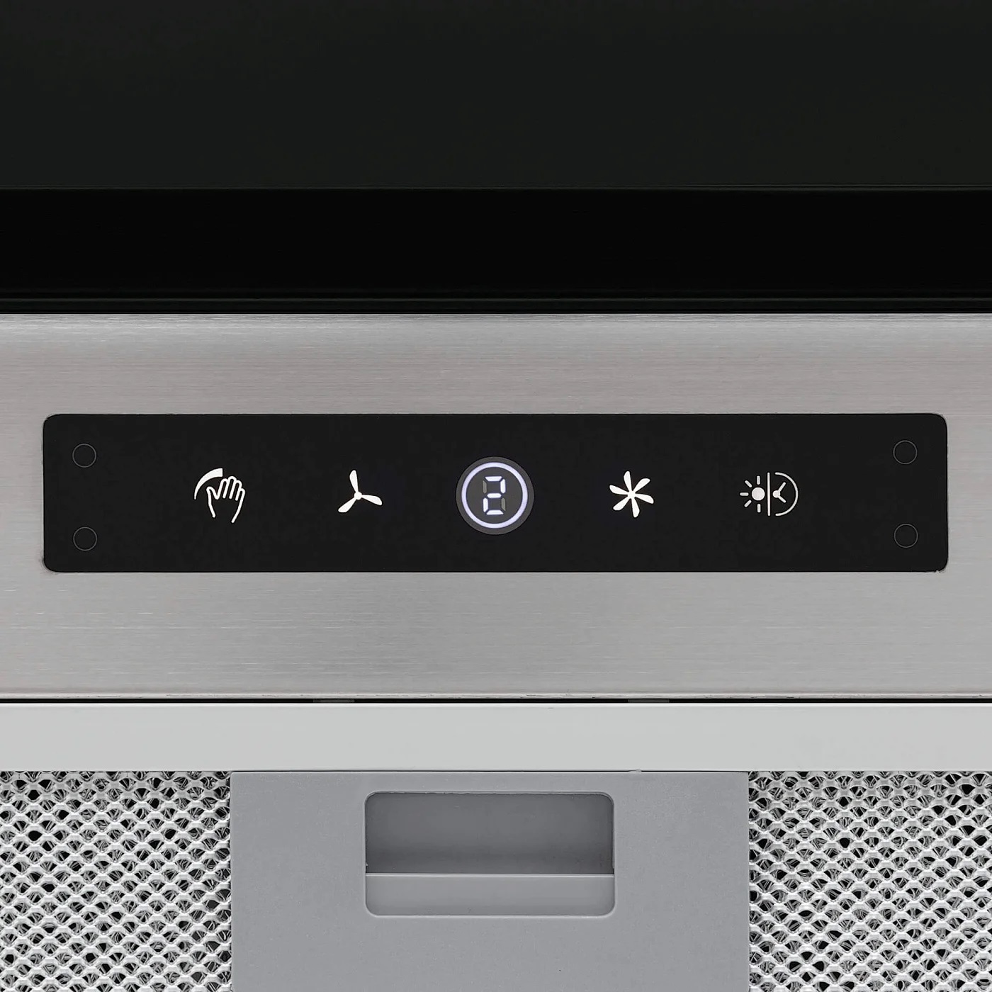 Электронное управление — неотъемлемая часть практически всех современных вытяжек. Внешне панель может оформляться по-разному: обычные или сенсорные кнопки, слайдер, цифровой дисплей. Особенность электронного управления в том, что все сигналы идут на внутренний блок, который программирует работу вытяжки в соответствии с вашими командами.