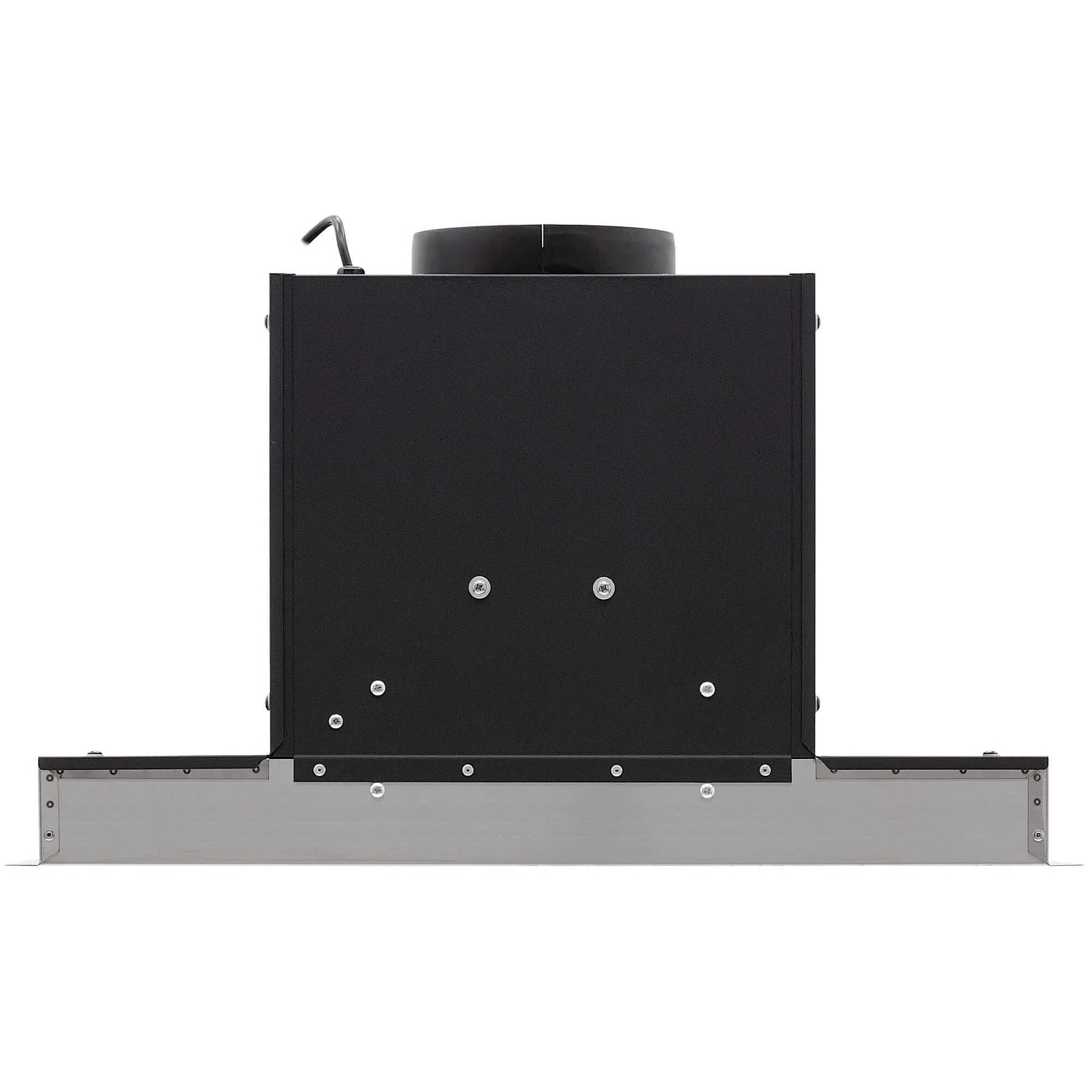 Вытяжка устанавливается в шкаф или в потолочную нишу — таким образом все соединительные элементы и корпус оказываются скрыты. Это подходящий вариант для небольшого помещения, если нужно максимально освободить пространство, а также необходимость, если вы продумываете кухонный дизайн до мелочей.