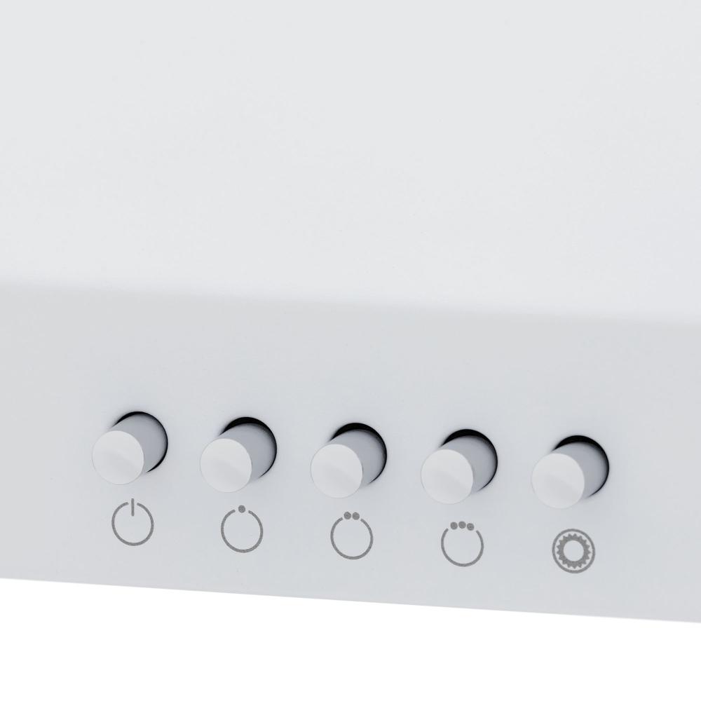 Встраиваемые и простые настенные модели, как правило, оснащаются боковой панелью управления, состоящей из нескольких кнопок. Их количество зависит от числа скоростей, наличия интенсивного режима и встроенного освещения. Боковое расположение панели управления делает вытяжку еще более незаметной.