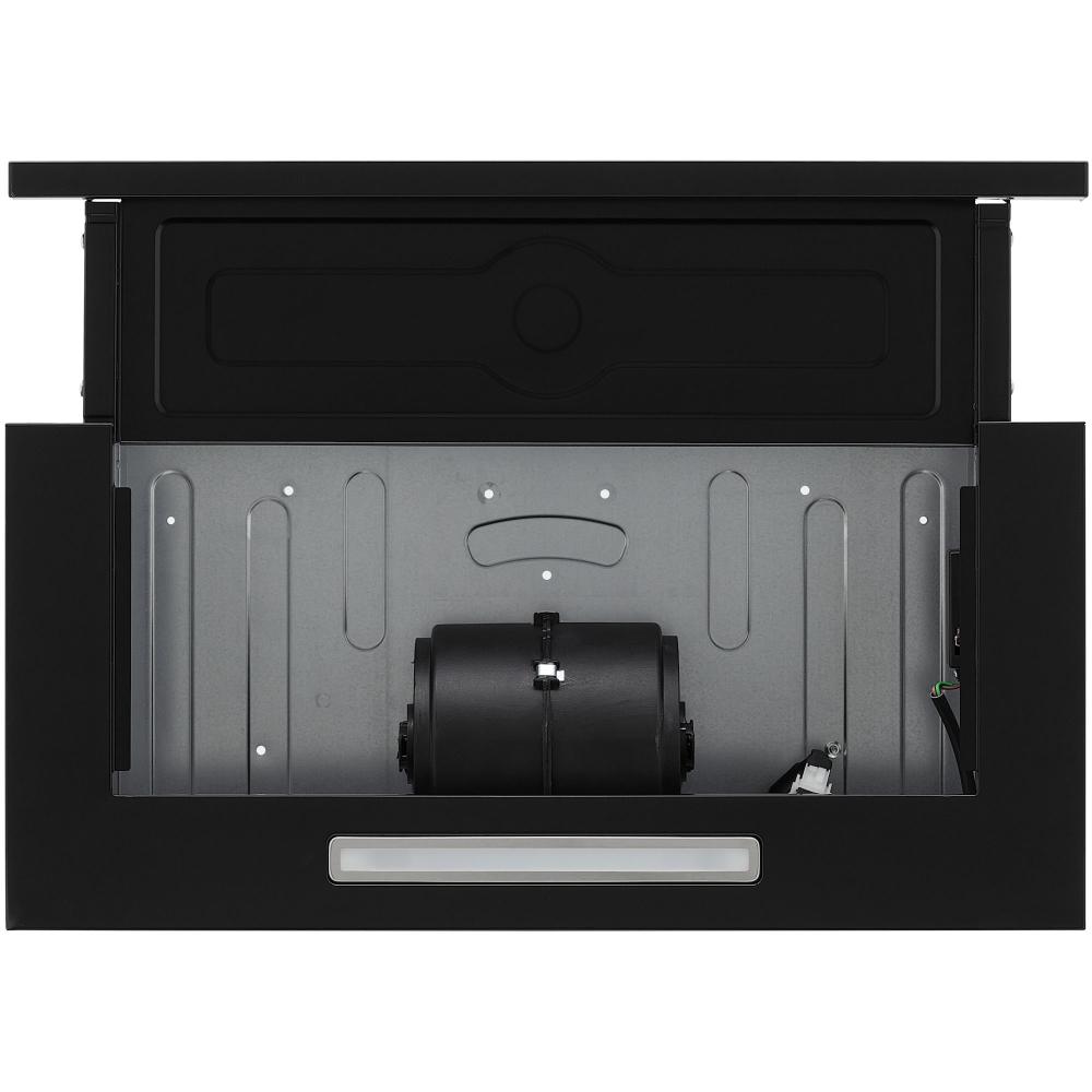 Вытяжки, встраиваемые в столешницу — эффективная инновация, которая подойдет для установки в кухне любой площади. Такие вытяжки размещаются за варочной поверхностью или рядом с ней. В отключенном состоянии всасывающая панель находится под столешницей, но после включения одной или нескольких конфорок она автоматически выдвигается при помощи специального лифтового механизма. Загрязненный воздух улавливается, не успевая распространиться по помещению. Когда вытяжка убрана, на виду остается только сенсорная панель управления. Недостатком подобных моделей является только сравнительно высокая цена.