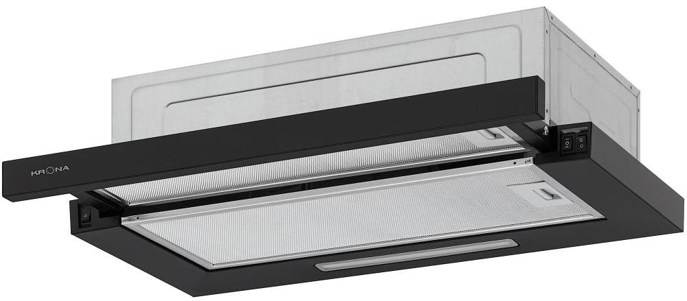 Встраиваемая вытяжка — выбор тех, кто хочет максимально задекорировать технику, или владельцев маленькой кухни. Тип встраивания: в шкаф. Обратите внимание на цветовые сочетания модели KRONA KERRY 600 BLACK PB V2, чтобы органично вписать ее в свою квартиру. Оттенок корпуса: черный. Благодаря лампочкам, которые расположены на нем, можно освещать плиту и столешницу рядом, чтобы готовить было еще проще и приятнее. Фишка этой техники — выдвижная панель.