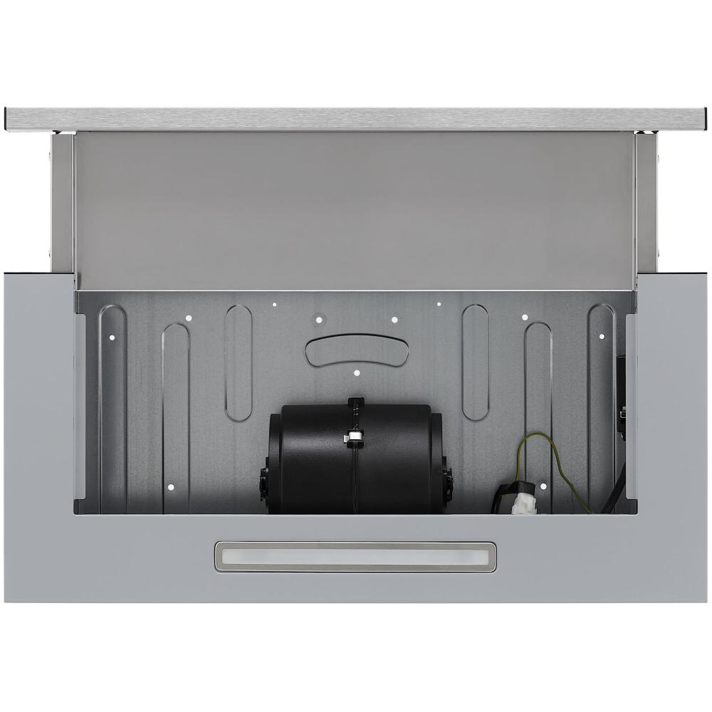В вытяжках, интегрированных в варочную поверхность и работающих в режиме рециркуляции, панель выдвигается при включении зоны нагрева автоматически. В закрытом же состоянии видны только сенсорные управляющие элементы, которые находятся вровень с варочной поверхностью.