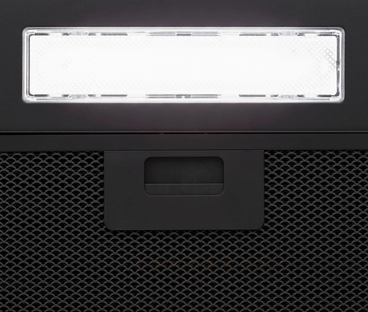 Встроенное освещение — функция, которая присутствует практически во всех современных вытяжках. Центрального освещения часто недостаточно для хорошего обзора рабочей зоны, особенно если над ней установлен подвесной шкаф. Интегрированные в вытяжку лампы позволяют готовить с комфортом, не напрягая зрение, их можно включать независимо от использования самой вытяжки.