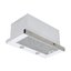 Можно выделить два основных вида вытяжек с выдвижной панелью. В вытяжках, встраиваемых в подвесной шкаф, выдвижная панель необходима, так как размеры таких устройств определяются размерами самого шкафа. В закрытом состоянии глубина вытяжки может быть меньше глубины варочной поверхности. Телескопическая выдвижная панель, которая устанавливается преимущественно в устройствах, работающих в режиме отвода, гарантирует полный захват воздуха, загрязненного каплями жира, частицами сажи, испарениями. Панель можно выдвинуть как нажатием на кнопку, так и потянув за ее переднюю часть. В некоторых моделях при подобном выдвижении одновременно включается подсветка. Когда же панель убрана, вытяжка становится практически незаметной — такой вариант лучше всего подходит для небольшой кухни.