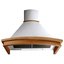 Еще один универсальный цвет — белый, он особенно хорошо подходит для небольших кухонь, так как зрительно способен расширить пространство. На белом фона меньше заметны капли воды и даже частицы жира. В классическом или античном белом выполняются купольные и каминные вытяжки, угловые и встраиваемые модели. Светлые кремовые тона, оттенок слоновой кости — наиболее распространенный вариант для больших вытяжек с окантовкой из натурального дерева.