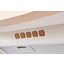 Часто кнопки или слайдеры находятся на фронтальной части устройства с правой стороны, чтобы их было удобнее переключать правой рукой и бывают скрыты выдвижным экраном. В больших купольных моделях кнопки специально выполняются так, чтобы бросаться в глаза: это заметная часть отделки устройства. Так, медные или латунные кнопки на светлом фасаде подчеркивают классический дизайн вытяжки и гармонируют с окантовкой из металла или натурального дерева. В таких моделях обычные кнопки или слайдеры могут заменяться более стильными поворотными переключателями.