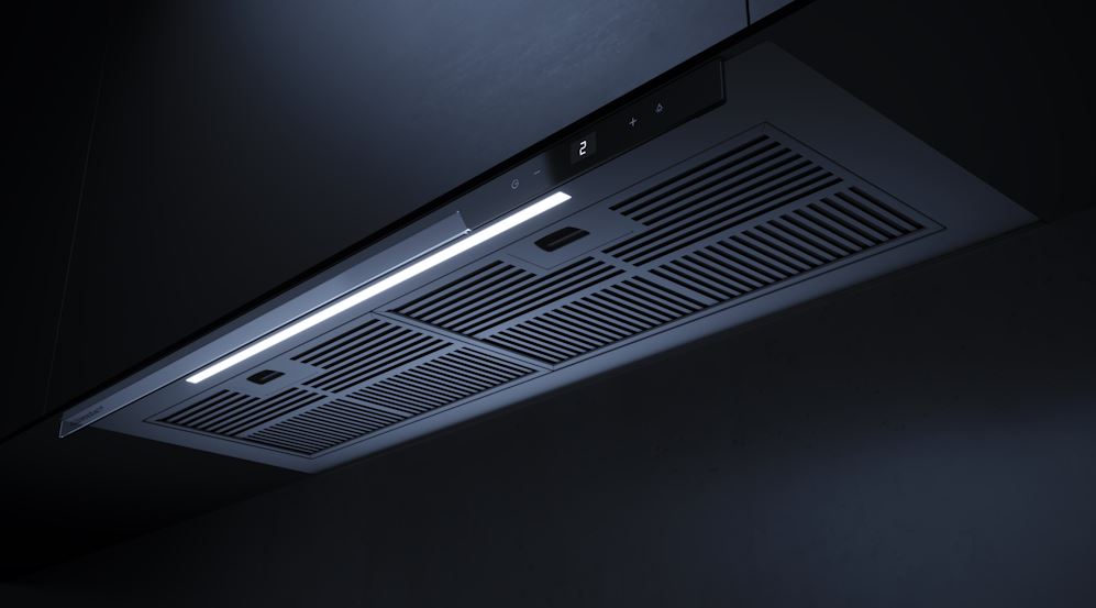 Вытяжки, встраиваемые в столешницу — эффективная инновация, которая подойдет для установки в кухне любой площади. Такие вытяжки размещаются за варочной поверхностью или рядом с ней. В отключенном состоянии всасывающая панель находится под столешницей, но после включения одной или нескольких конфорок она автоматически выдвигается при помощи специального лифтового механизма. Загрязненный воздух улавливается, не успевая распространиться по помещению. Когда вытяжка убрана, на виду остается только сенсорная панель управления. Недостатком подобных моделей является только сравнительно высокая цена.