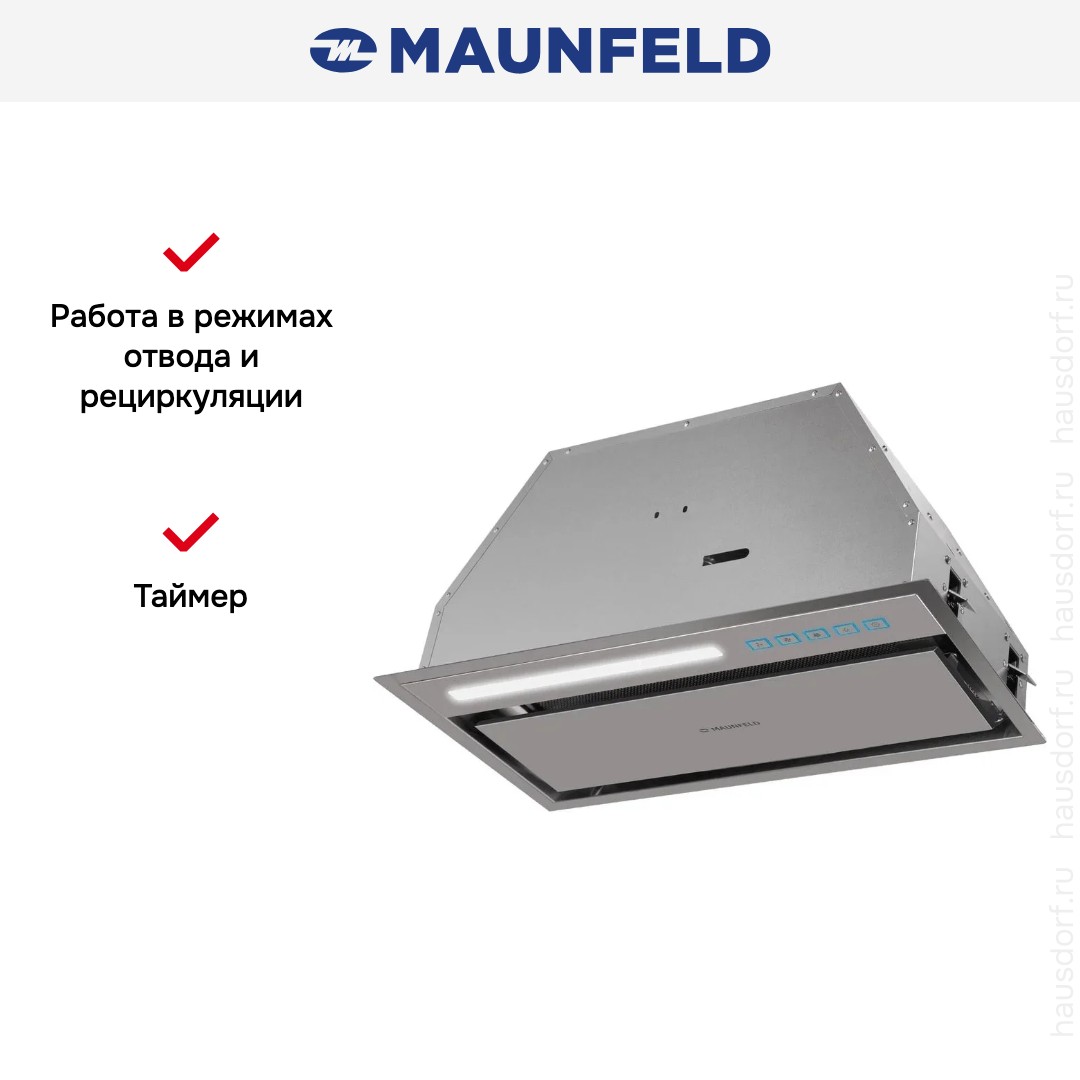 Встраиваемая вытяжка Maunfeld Clare 60 Inox отлично вписывается в современную кухню благодаря своей конструкции и лаконичному дизайну. Ее компактные габариты 30.7×59.8×29 см позволяют спрятать прибор в стандартный кухонный шкаф. Нержавеющая сталь устойчива к пятнам и легко очищается, при этом металл гарантирует долговечность и солидный внешний вид. Маленькая высота и глубина делают модель подходящей для шкафчиков любого размера, даже совсем небольших.