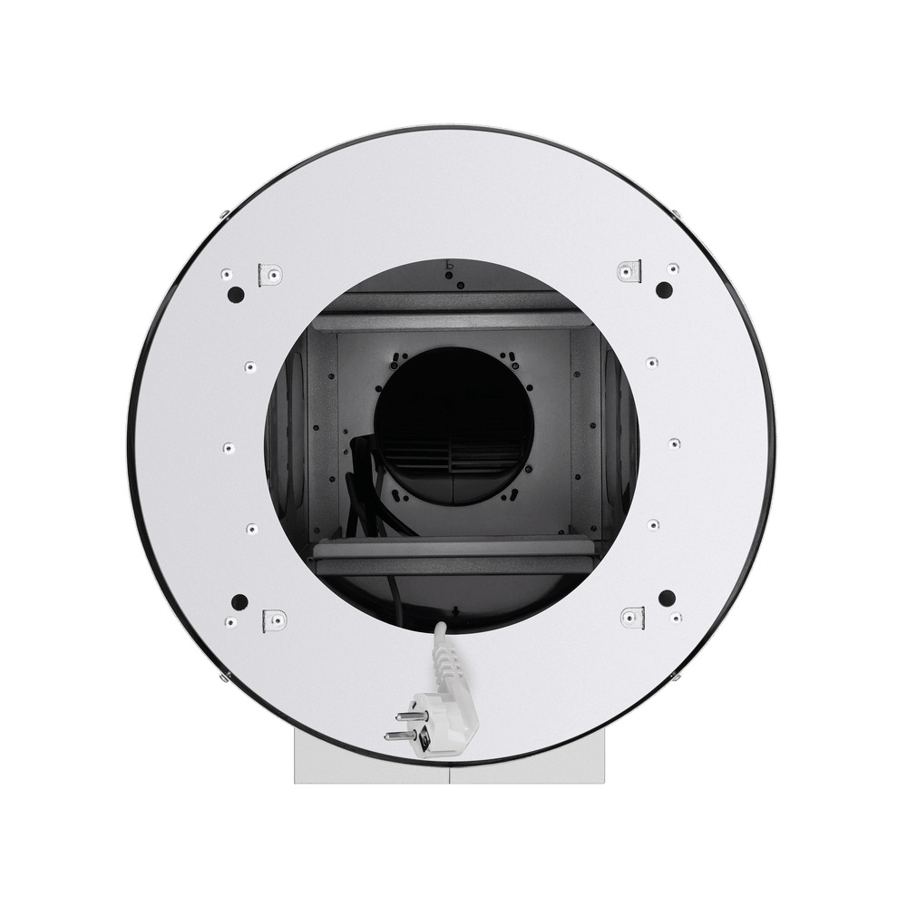 Глубина 48 см и ширина 38,7 см дают оптимальное покрытие рабочей зоны, а диаметр патрубка 150 мм обеспечивает эффективный отвод воздуха. Металлическая конструкция также упрощает уход: поверхности можно быстро и легко протереть, а встроенный жироулавливающий фильтр из алюминия легко снимается и моется. Панель управления снабжена кнопочными элементами, простыми и надежными в повседневном использовании.