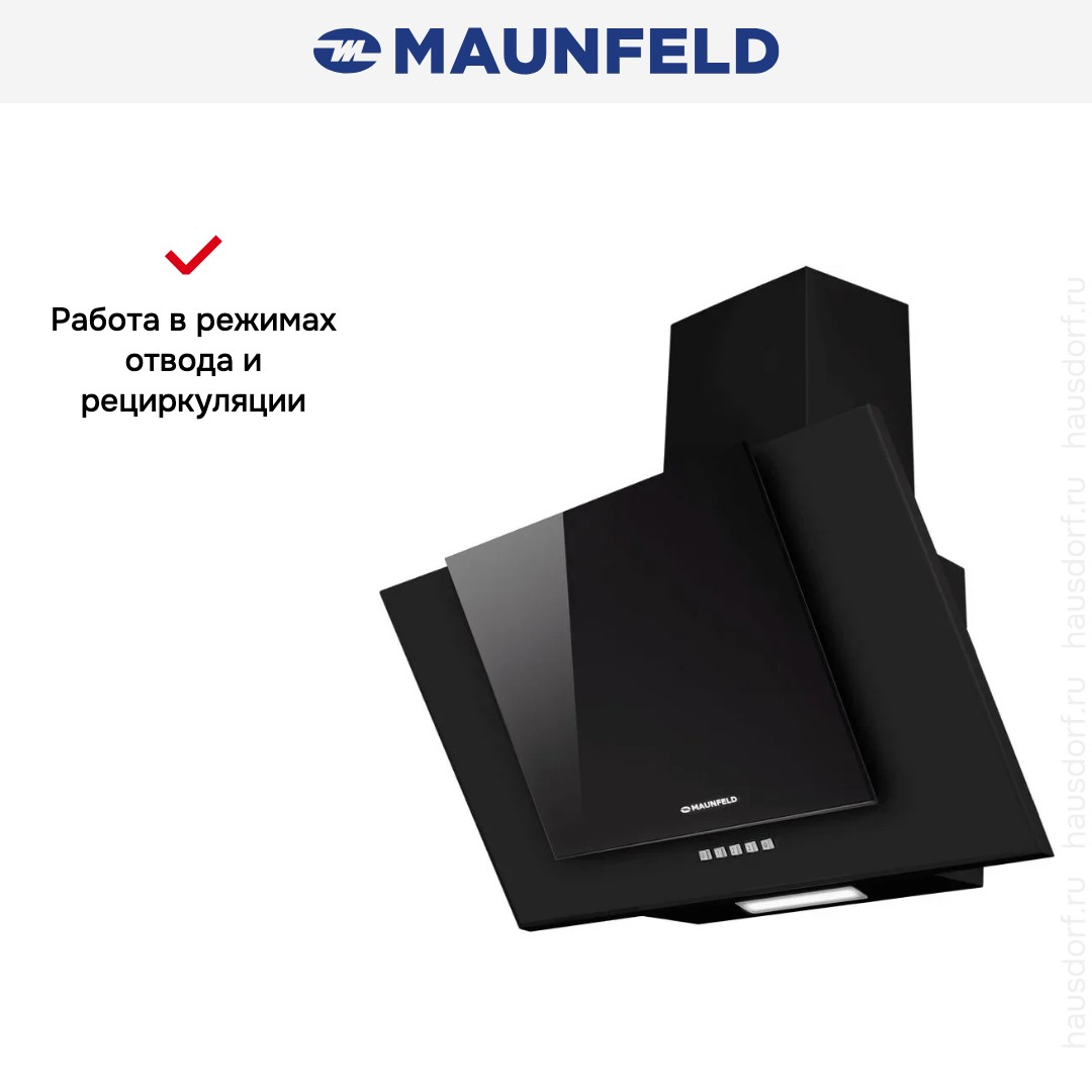 Вытяжка Maunfeld Wind 60 A Black — наклонная модель в глубоком черном цвете, дизайн которой объединяет металл и стекло. Ее четкие линии и глянцевые акценты делают прибор эффектным, но сдержанным элементом интерьера. За счет черного покрытия изделие легко вписывается как в монохромные, так и контрастные решения. Компактные габариты 64-92×60×35.5 см позволяют установить прибор над стандартной варочной панелью без визуального перегруза.