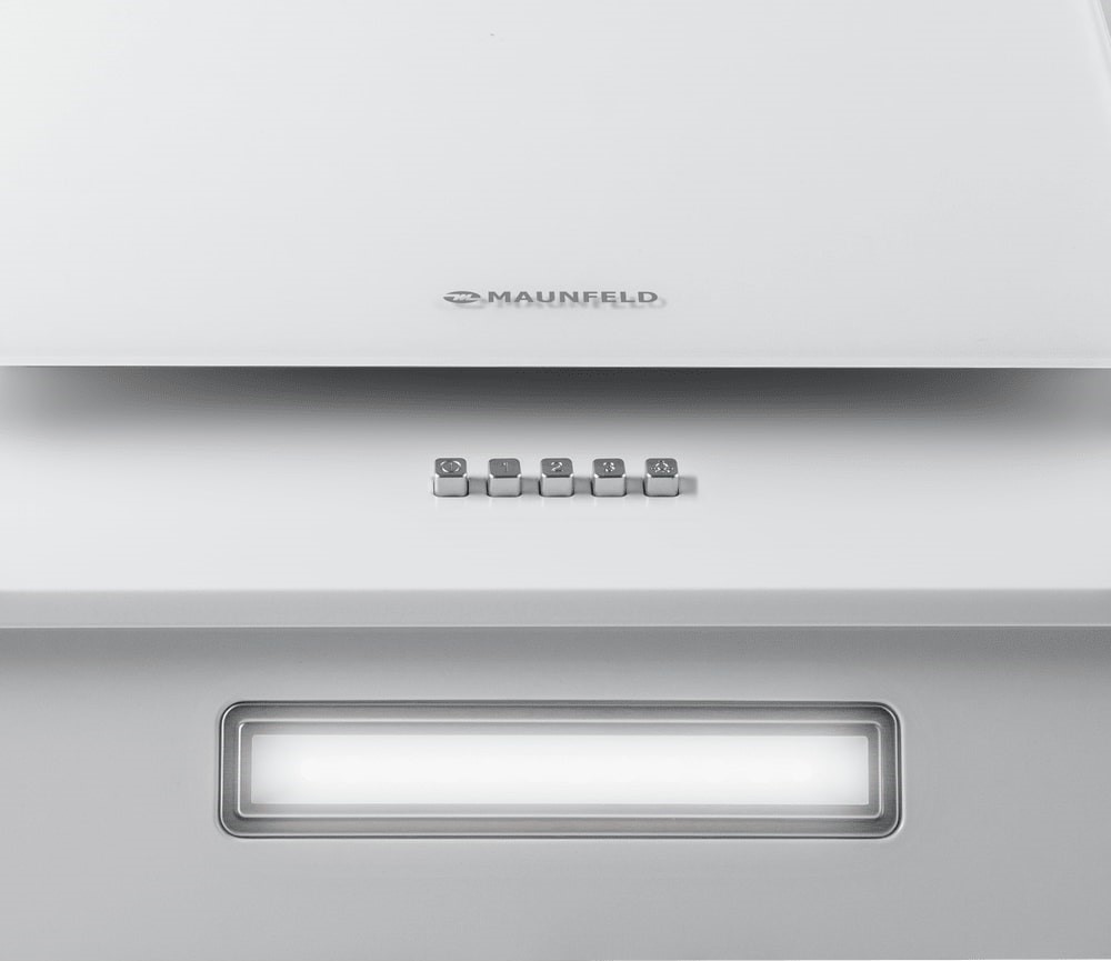 Вытяжка Maunfeld Wind 60 A White выполнена в наклонном стиле и сочетает металл и стекло в лаконичном белом корпусе. Такой дизайн не загромождает визуально пространство над плитой и делает рабочую зону комфортной. Наклонный экран освобождает не только создаёт современный акцент в интерьере, но и облегчает доступ к дальним конфоркам.