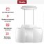 Модель высотой 70 см выполнена в цвете «бриллиантовый белый» и оснащена двумя светодиодными лампами с функцией Dimm для регулировки яркости. Может работать в сочетании с панелью конфорок Miele с поддержкой Wi-Fi. О необходимости очистки или замены фильтров предупреждают специальные индикаторы.