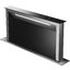Встраиваемая в столешницу вытяжка шириной 88 см принадлежит к основной линейке, она изготовлена из черного стекла с матовой отделкой и серебристым логотипом. Прибор может работать в режиме отвода воздуха с присоединением к системе вентиляции и режиме рециркуляции с очисткой воздуха в помещении. Электронное управление Touch Control с цифровым дисплеем и красной подсветкой служит для выбора скорости работы из 4 вариантов. Сенсорная панель не имеет выступов и очень удобна в уходе. При помощи таймера можно запрограммировать автоматическое отключение прибора через 10-15 минут. Модель может управляться дистанционно при помощи пульта, который требуется приобрести дополнительно. Для подсветки рабочего места служит светодиодная лампа мощностью 7 Вт, интенсивность освещения можно отрегулировать. Максимальная производительность 725 м3/час позволит встраивать эту модель в большой кухне. Два жироулавливающих фильтра из алюминия снимаются для регулярной очистки. Имеется возможность установки угольного фильтра с индикатором загрязнения для предупреждения о необходимости замены. Уровень шума на первой скорости очень низок — он составляет всего 40 дБ.