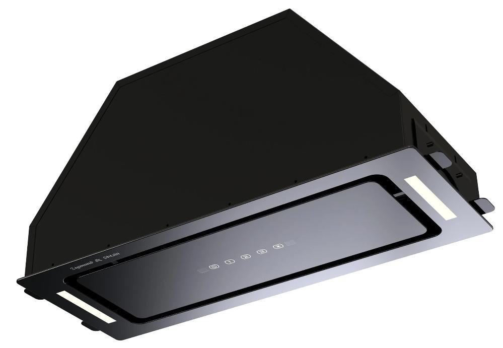Вытяжка, встраиваемая в потолок, часто устанавливается над кухонным островом в просторной кухне и отличается достаточно высокой мощностью: она может работать как в режиме рециркуляции, так и в режиме отвода, так как воздуховод также скрыт в потолке. Вытяжки могут монтироваться в подвесной потолок либо устанавливаться в специальные многоярусные конструкции из гипсокартона непосредственно во время ремонта кухни. Для управления ими используется пульт ДУ.