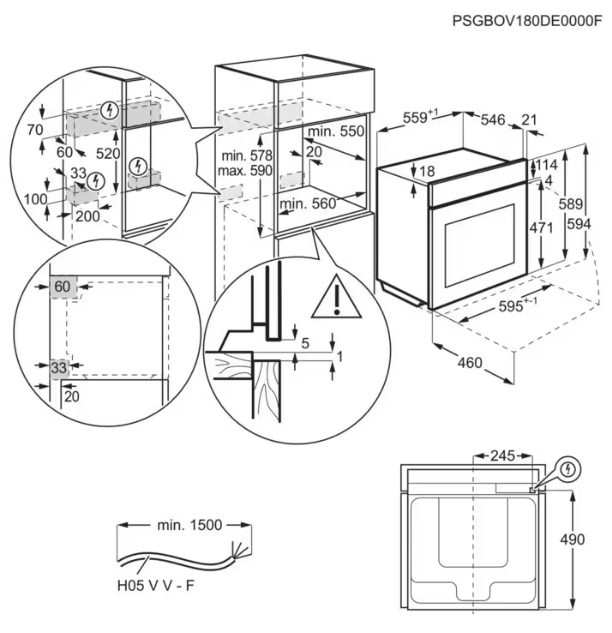 AEG NBP9S831AT - схема с размерами к духовому шкафу на разных языках на Hausdorf