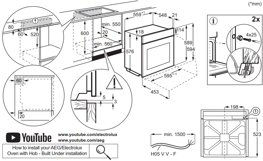 Electrolux KODEF75X2 - схема с размерами версия 2 к духовому шкафу на разных языках на Hausdorf