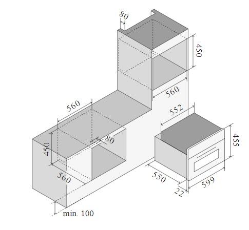 Ilve 645SLZT4/SS - схема встраивания для 645SLZT4/SS к духовому шкафу на разных языках на Hausdorf