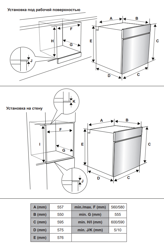 Jacky`s JO EB7535 - схема встраивания к духовому шкафу на разных языках на Hausdorf