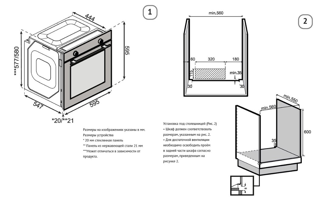 Korting OKB 61061 SQGGr - схема с размерами версия 2 к духовому шкафу на разных языках на Hausdorf
