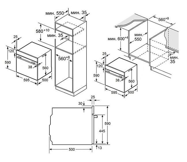 Maunfeld AEOC604B - схема с размерами к духовому шкафу на разных языках на Hausdorf