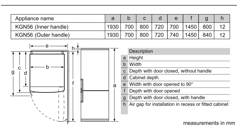 Bosch KGN56CX30U - схема с размерами версия 2 на разных языках