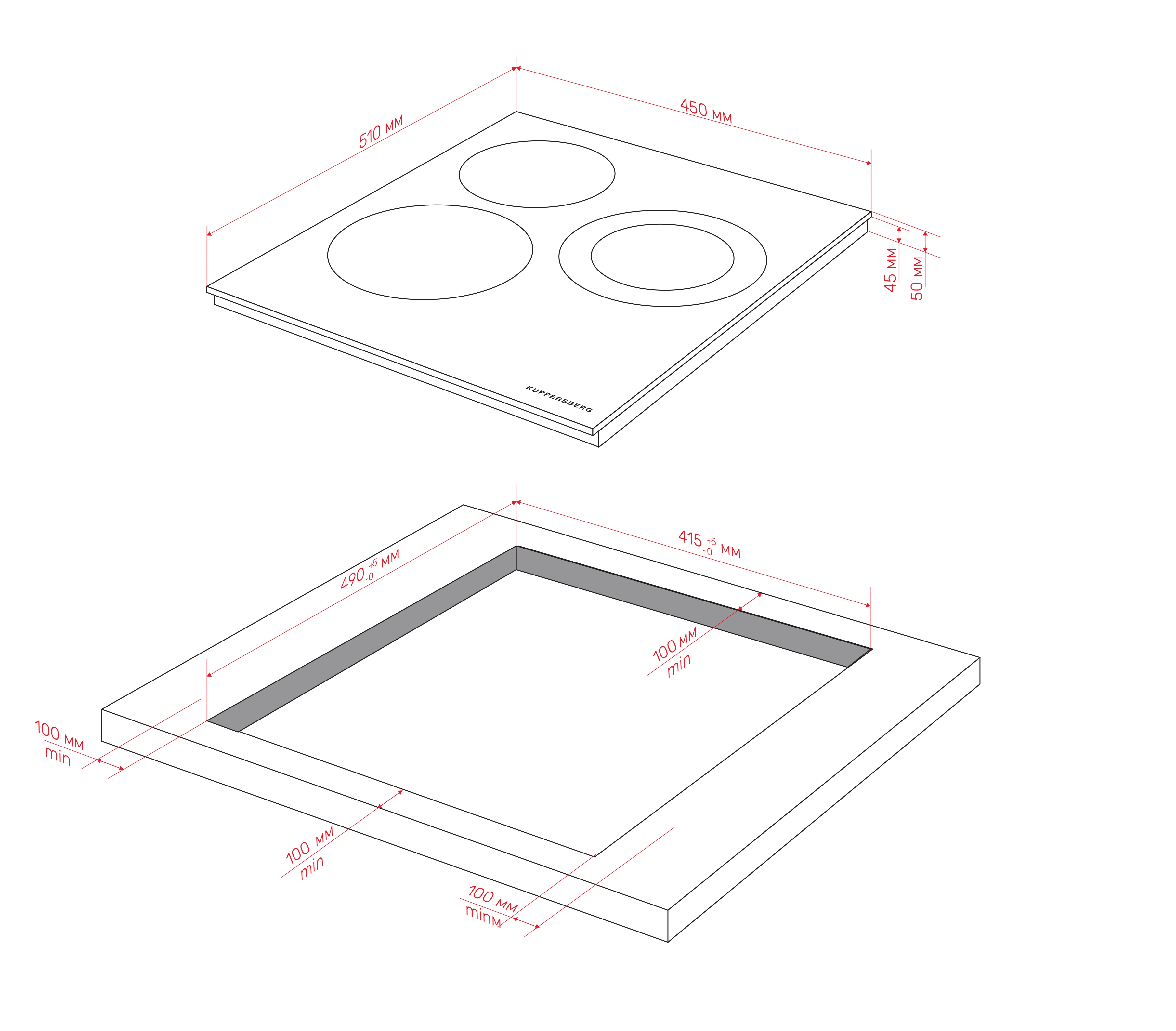 Kuppersberg ECO 400 - схема встраивания к варочной панели на разных языках на Hausdorf