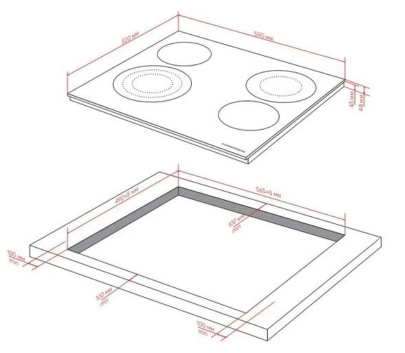 Kuppersberg ECS 635 - схема с размерами к варочной панели на разных языках на Hausdorf
