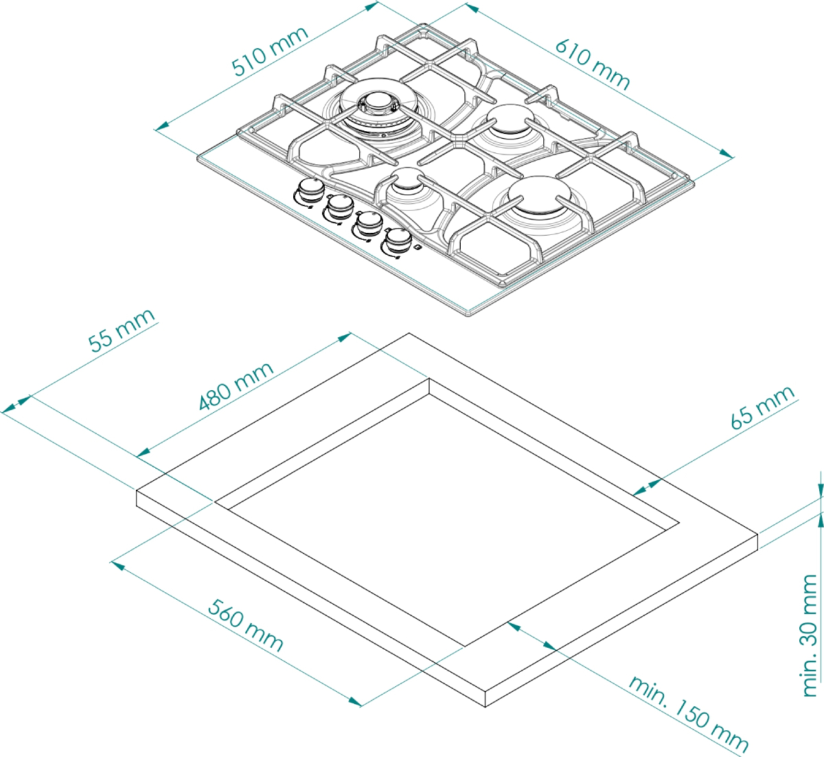 Kuppersberg FS 604 W Silver - схема встраивания к варочной панели на разных языках на Hausdorf
