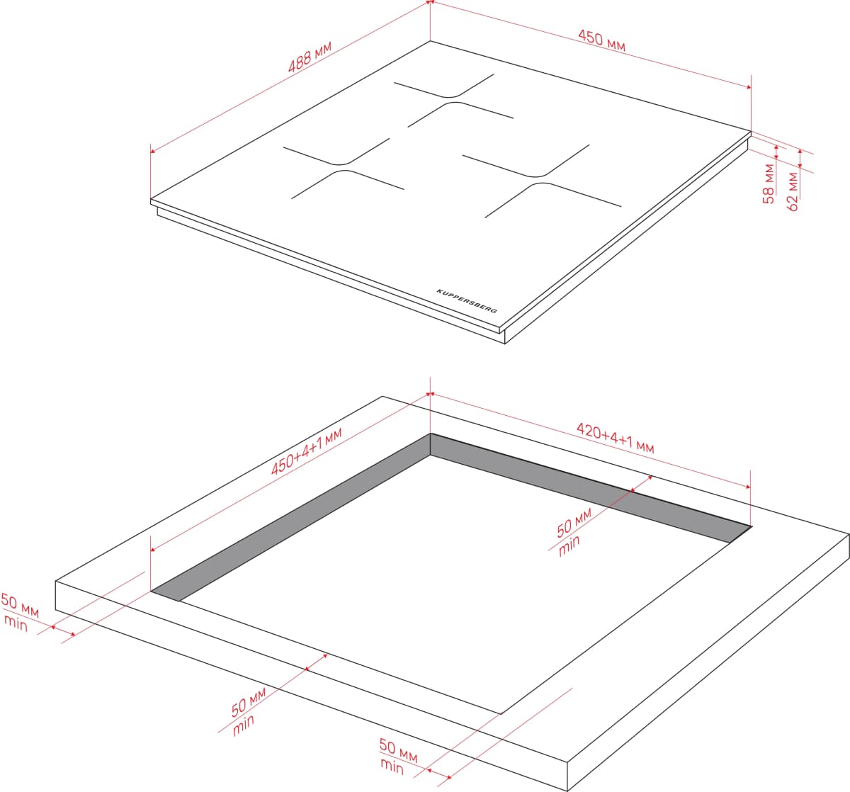 Kuppersberg ICI 406 - схема встраивания к варочной панели на разных языках на Hausdorf
