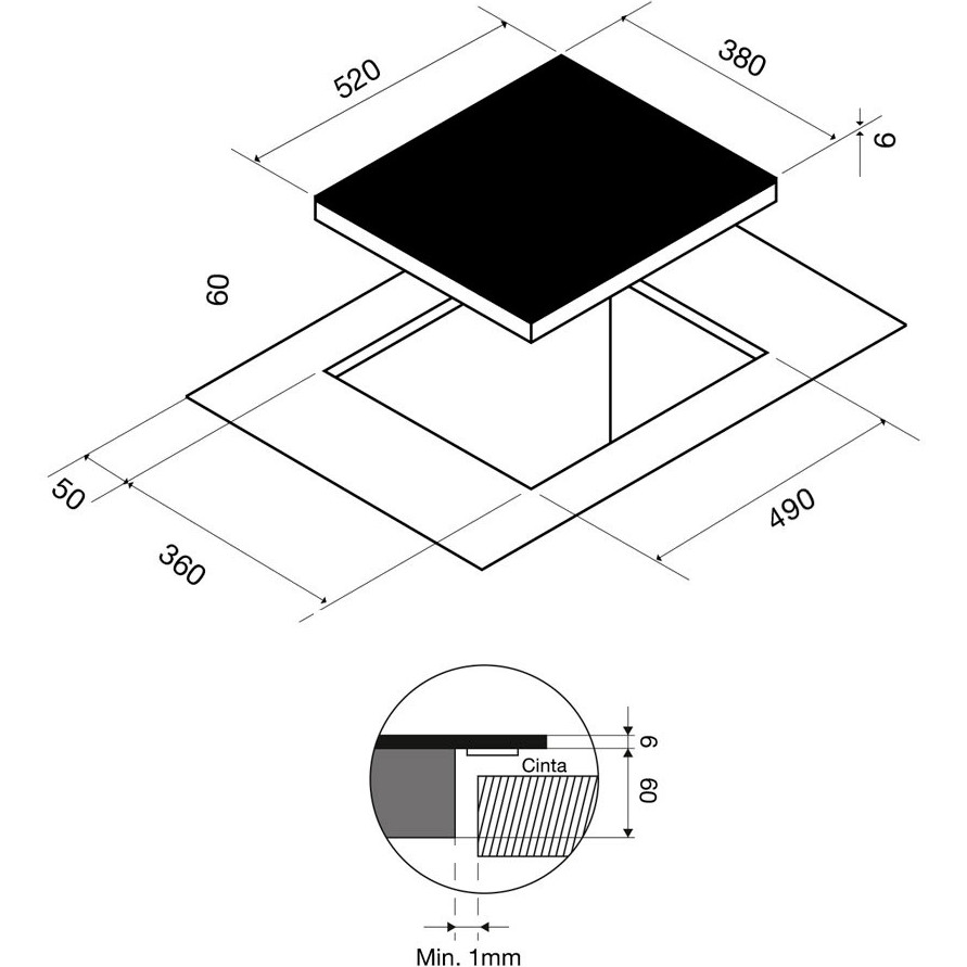 Pando PI-TEP - схема встраивания к варочной панели на разных языках на Hausdorf