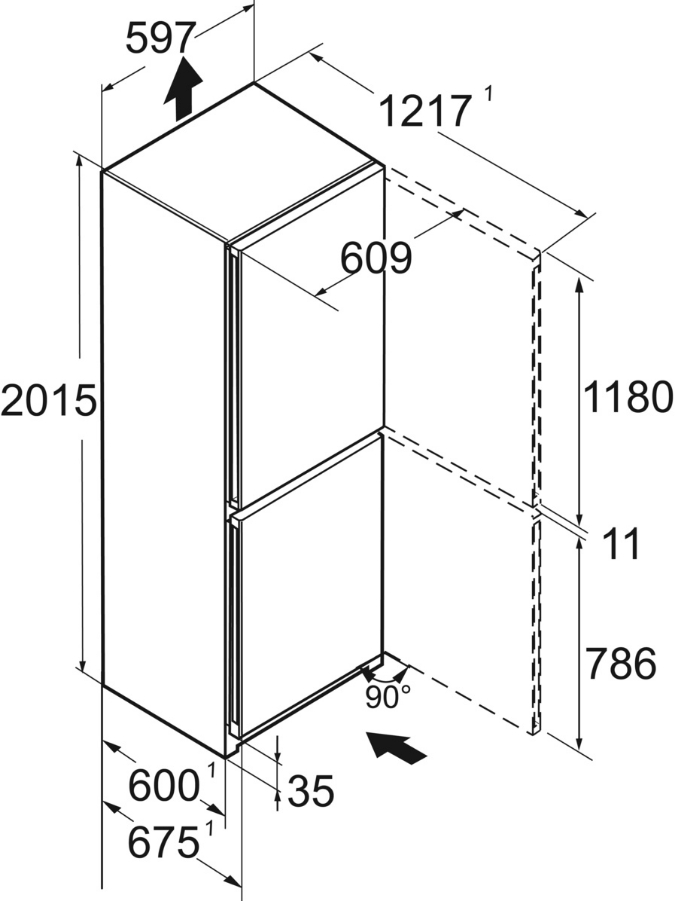 Liebherr CBNdgc 5723 - схема с размерами к холодильнику на разных языках на Hausdorf