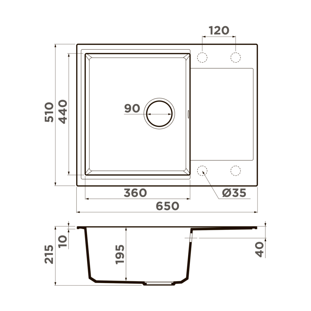 Omoikiri Daisen 65 ES - схема с размерами версия 2 к мойке на разных языках на Hausdorf