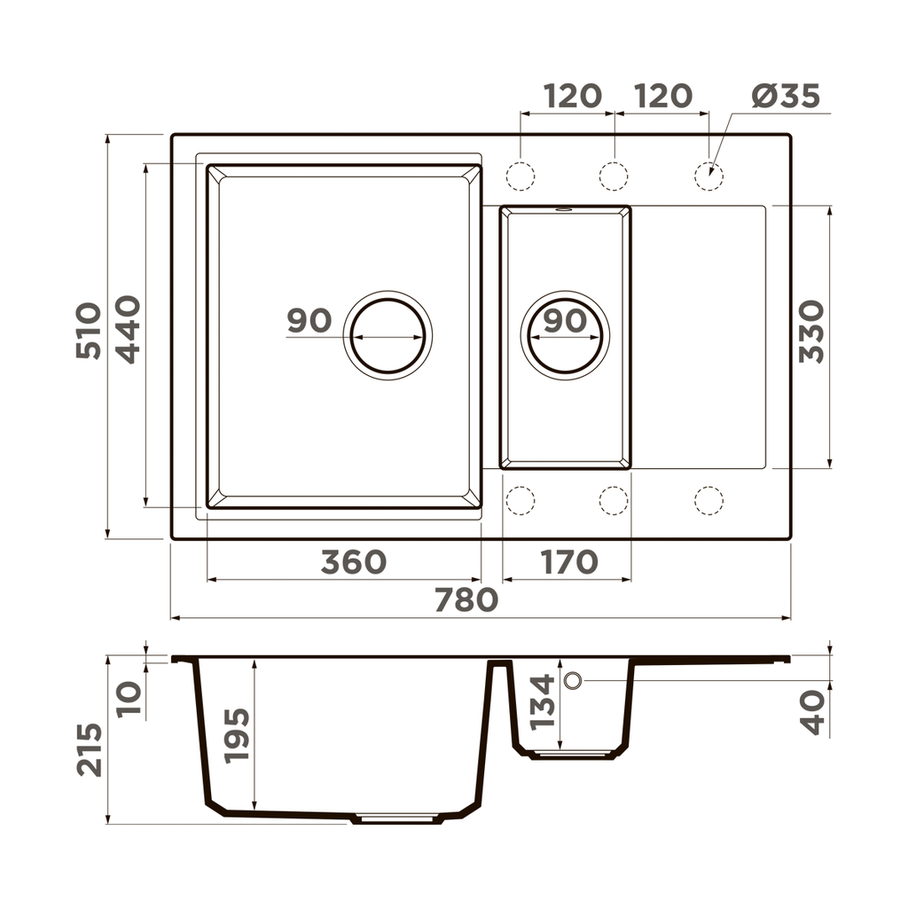 Omoikiri Daisen-78-2-PA - схема с размерами к мойке на разных языках на Hausdorf