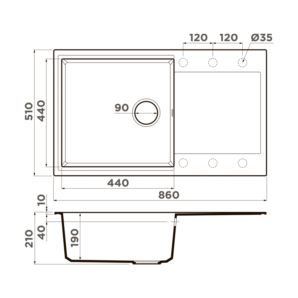 Сохранить файл: Схема с размерами к Omoikiri Daisen-86-BL.PNG, 112.51 Кб